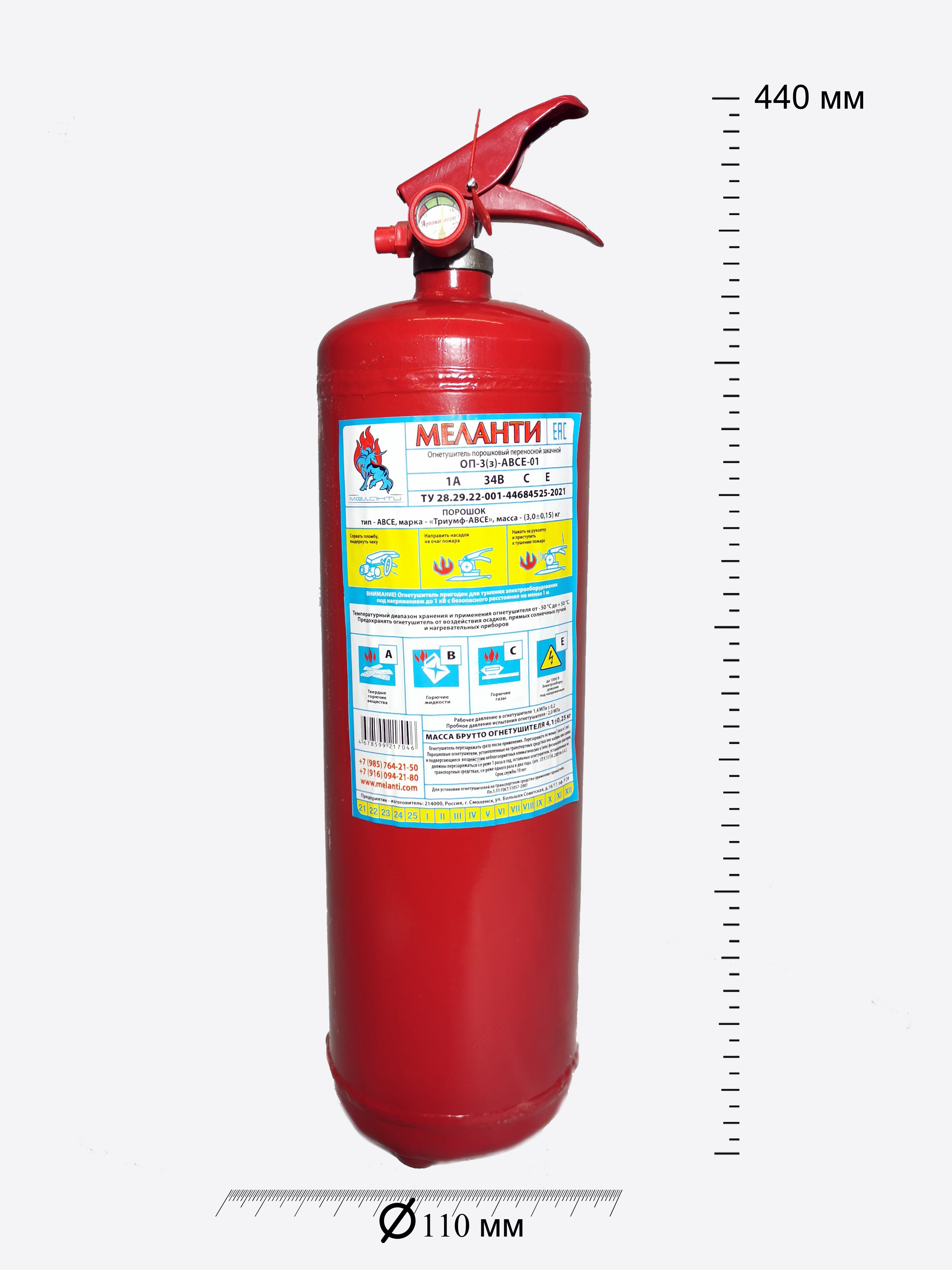 | Масса огнетушащего вещества | 3,0±0,15 кг |