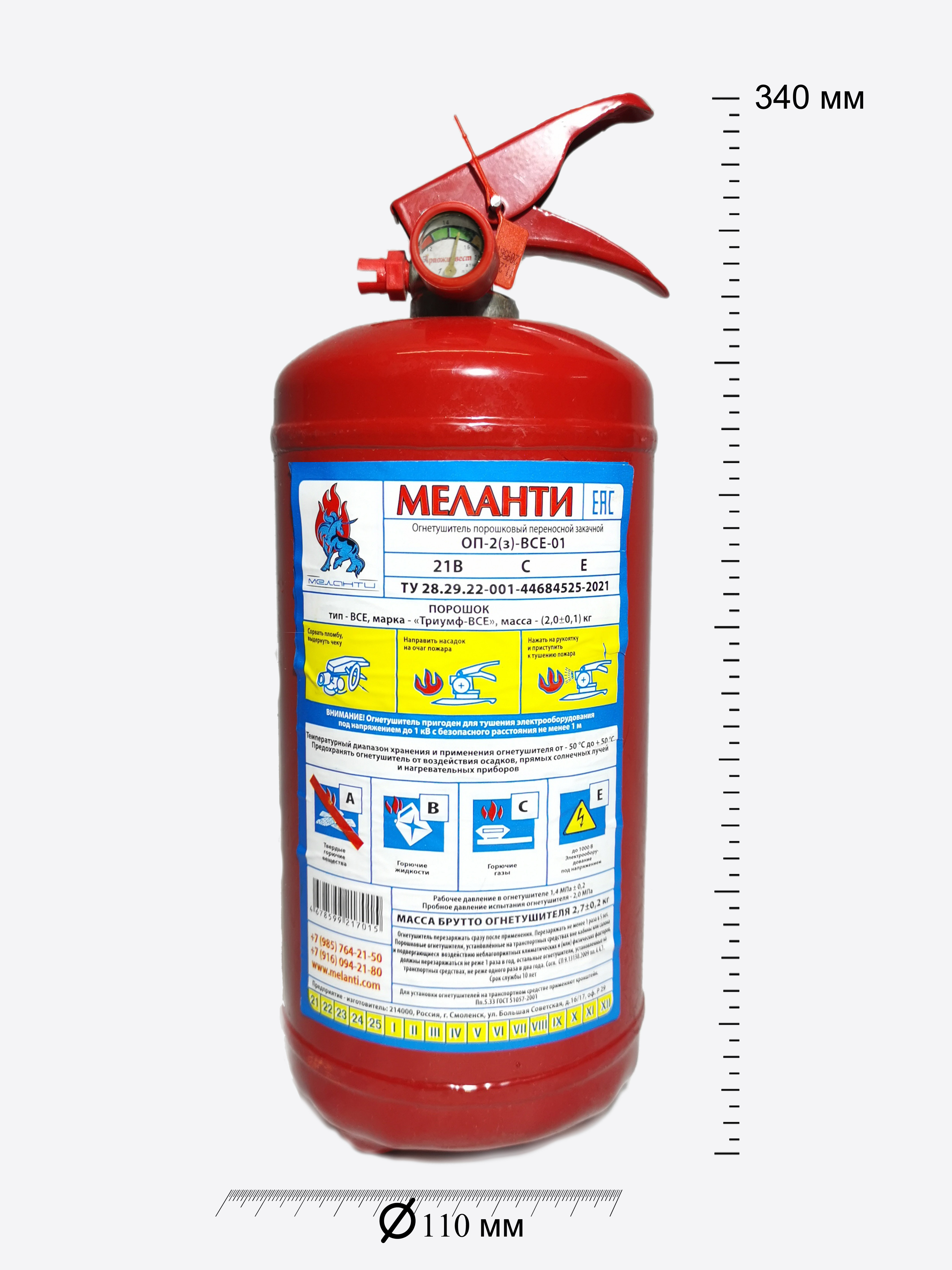 | Масса огнетушащего вещества | 2,0±0,05 кг |