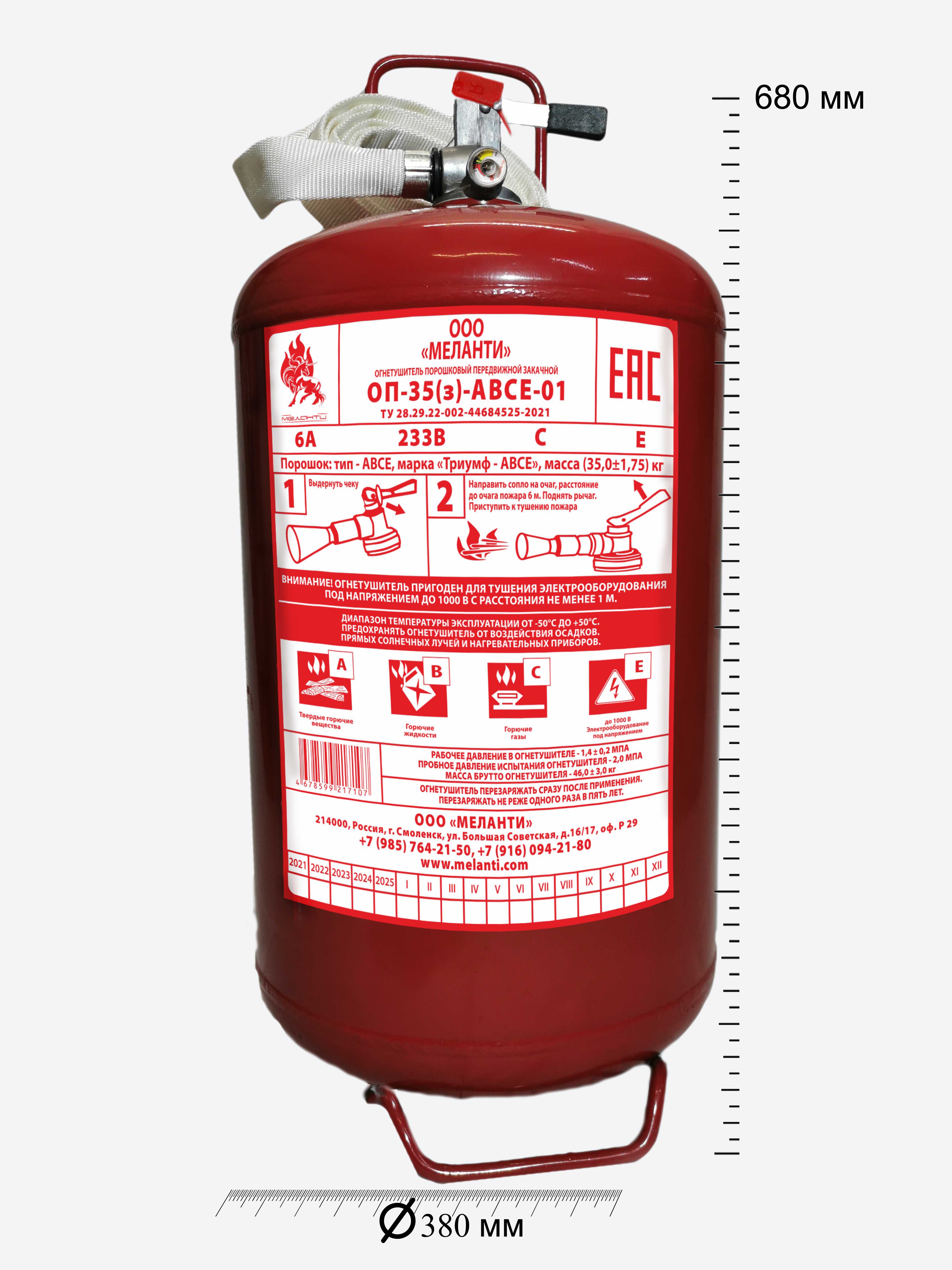 | Масса огнетушащего вещества | 35,0±1,75 кг |