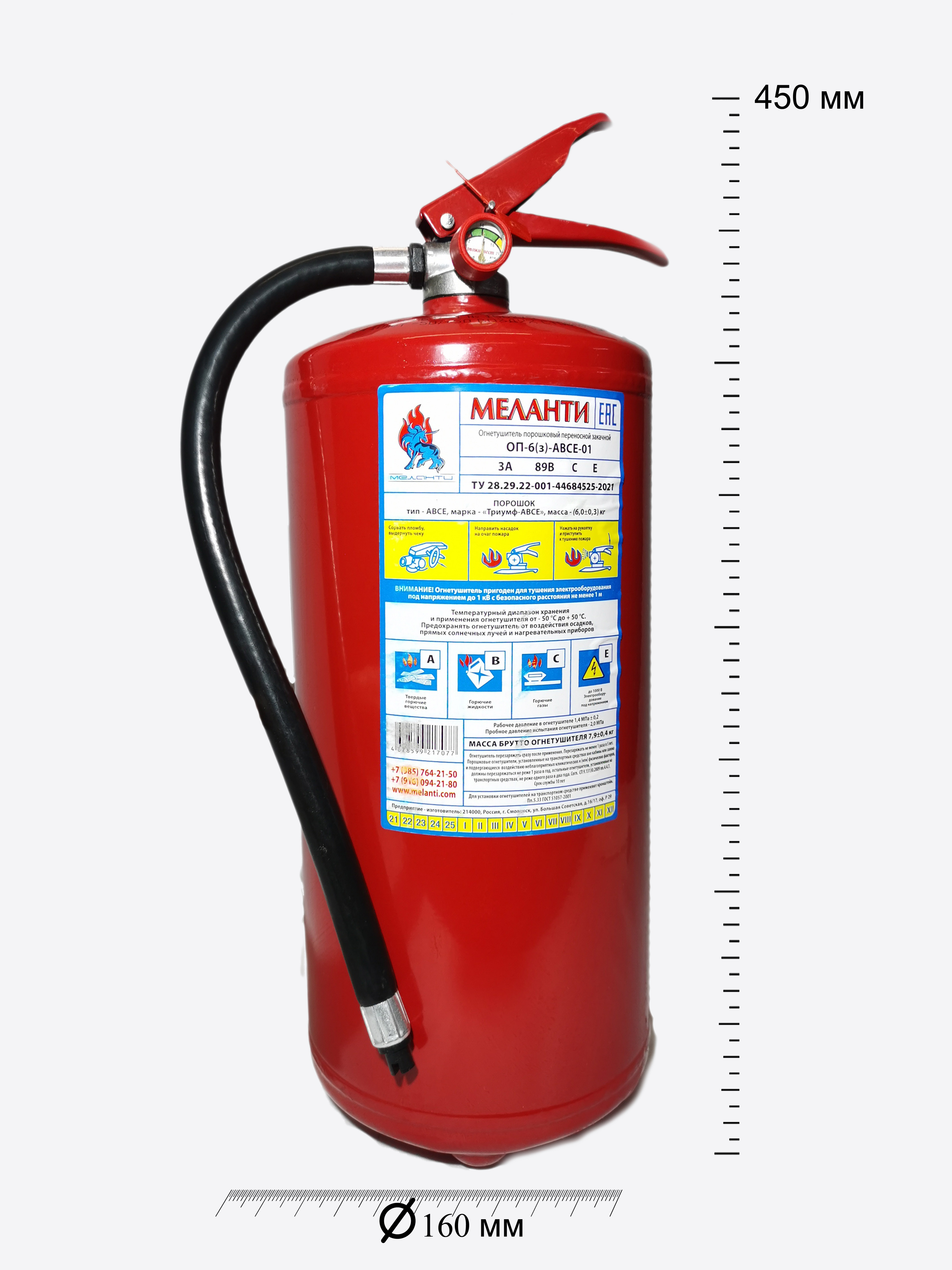 | Масса огнетушащего вещества | 6,0±0,3 кг |